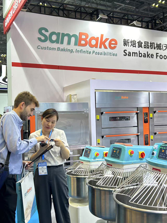 Amid this trend, SamBake stood out as a highlight of the exhibition. As a company dedicated to the design and manufacturing of commercial baking equipment, SamBake has long focused on the customization track—offering end-to-end solutions for small and emerging bakery brands and baking equipment entrepreneurs around the world. From dough preparation and dividing to proofing and baking, our full range of equipment—including deck ovens,rotating rack ovens, retarder proofers—was on display. Our custom color and logo design services also drew significant attention and inquiries from international buyers.